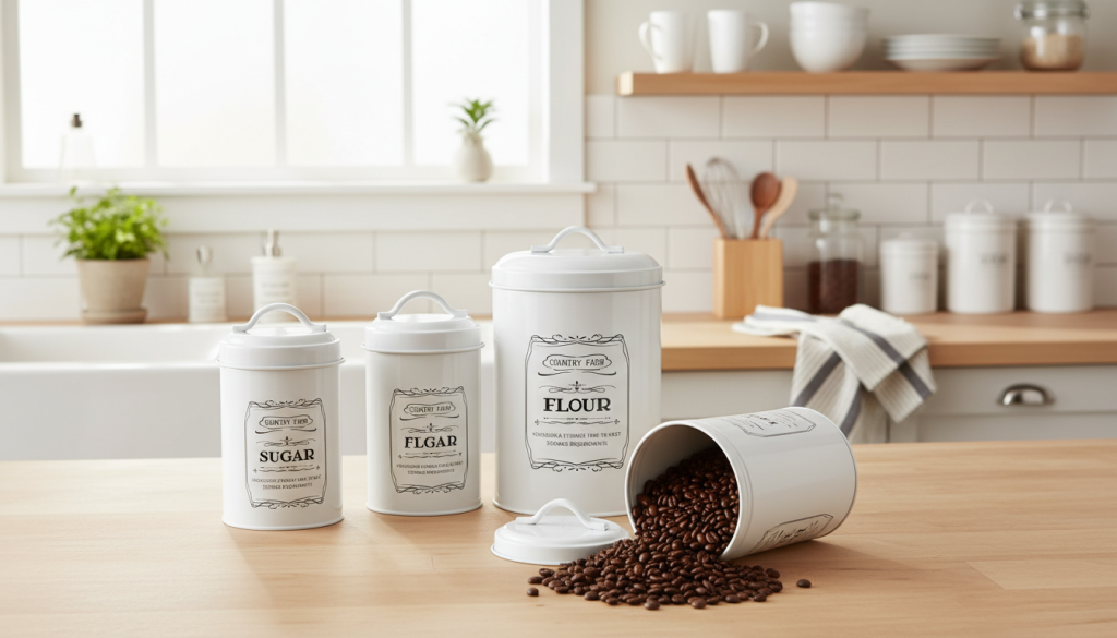 - Yarlung Farmhouse Metal Canisters (Set of 4, Nested) — classic labeled look, compact storage