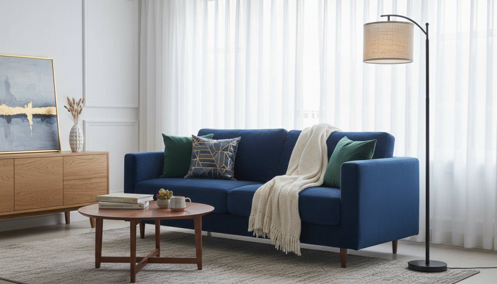 Best for: Corners, small-to-medium living rooms, flexible “day-to-night” lighting.